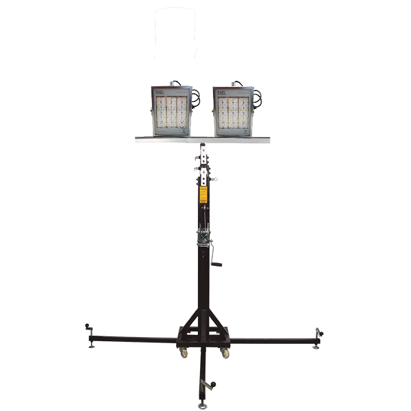 TORRE: Estructura portátil completa con mástil de tipo telescópico extensible hasta 7 metros de altura, accionado mediante malacate manual. Ruedas integradas para traslado y orientación, gatillos con levas de seguridad. Excelente relación peso-capacidad de carga. Totalmente plegable para mayor comodidad de transporte.